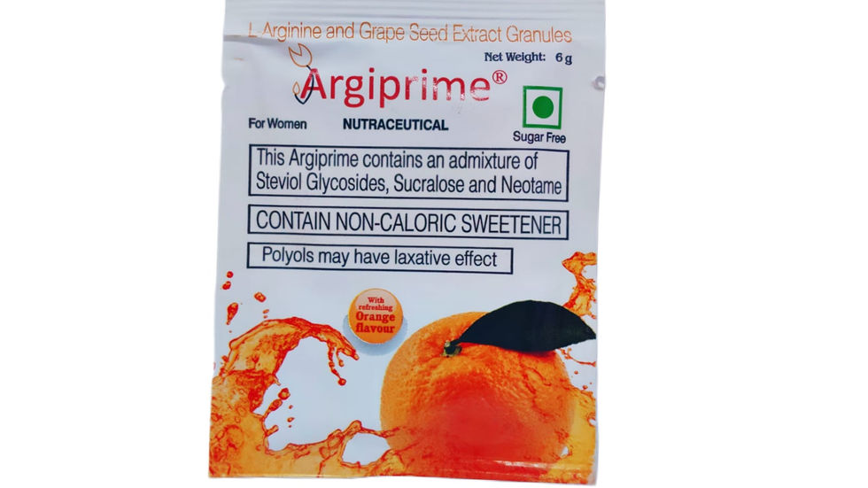 Argiprime is a special nutraceutical preparation made to suit female users, which is a combination of L-Arginine and Grape Seed Extract to help in the overall well-being of the body. It assists to improve blood circulation, is antioxidant and beneficial to the general health. It is refreshing and contains no sugar, hence can be used on a daily basis with an orange flavour.