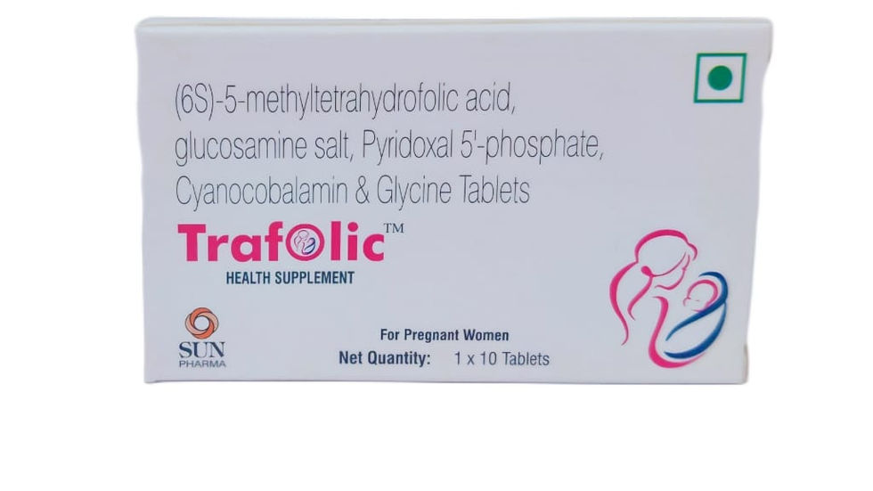 Trafolic is an advanced nutritional supplement designed to support the increased nutritional needs during pregnancy. It contains bioactive folate (6S-5-MTHF) along with Vitamin B6, Vitamin B12, Glycine, and Glucosamine salt, offering enhanced absorption and better metabolic utilization compared to regular folic acid.