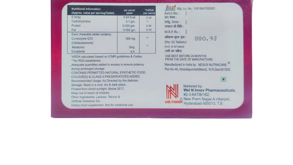 TruCo-Q300 is a premium fast-dissolving chewable supplement combining Coenzyme Q10 and Melatonin, designed to provide enhanced absorption and faster action.