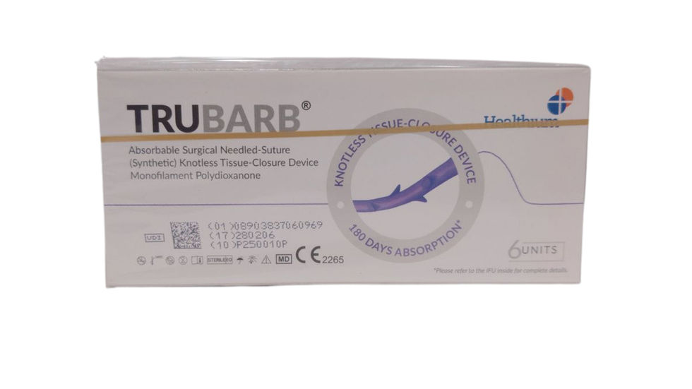 The TRUBARB Surgical Needle Suture (45 cm) is an advanced barbed, knotless, absorbable suture primarily manufactured by Healthium Medtech. It is designed to facilitate efficient and secure tissue closure without the need for knot tying, reducing operating time and tissue trauma.